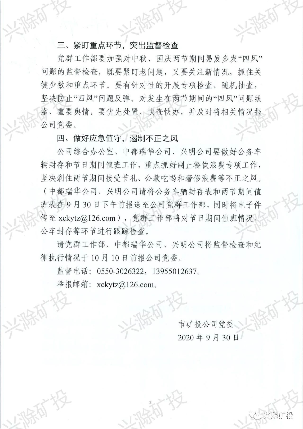 市礦投公司關(guān)于加強(qiáng)2020年中秋國(guó)慶兩節(jié)期間廉潔紀(jì)律工作的通知