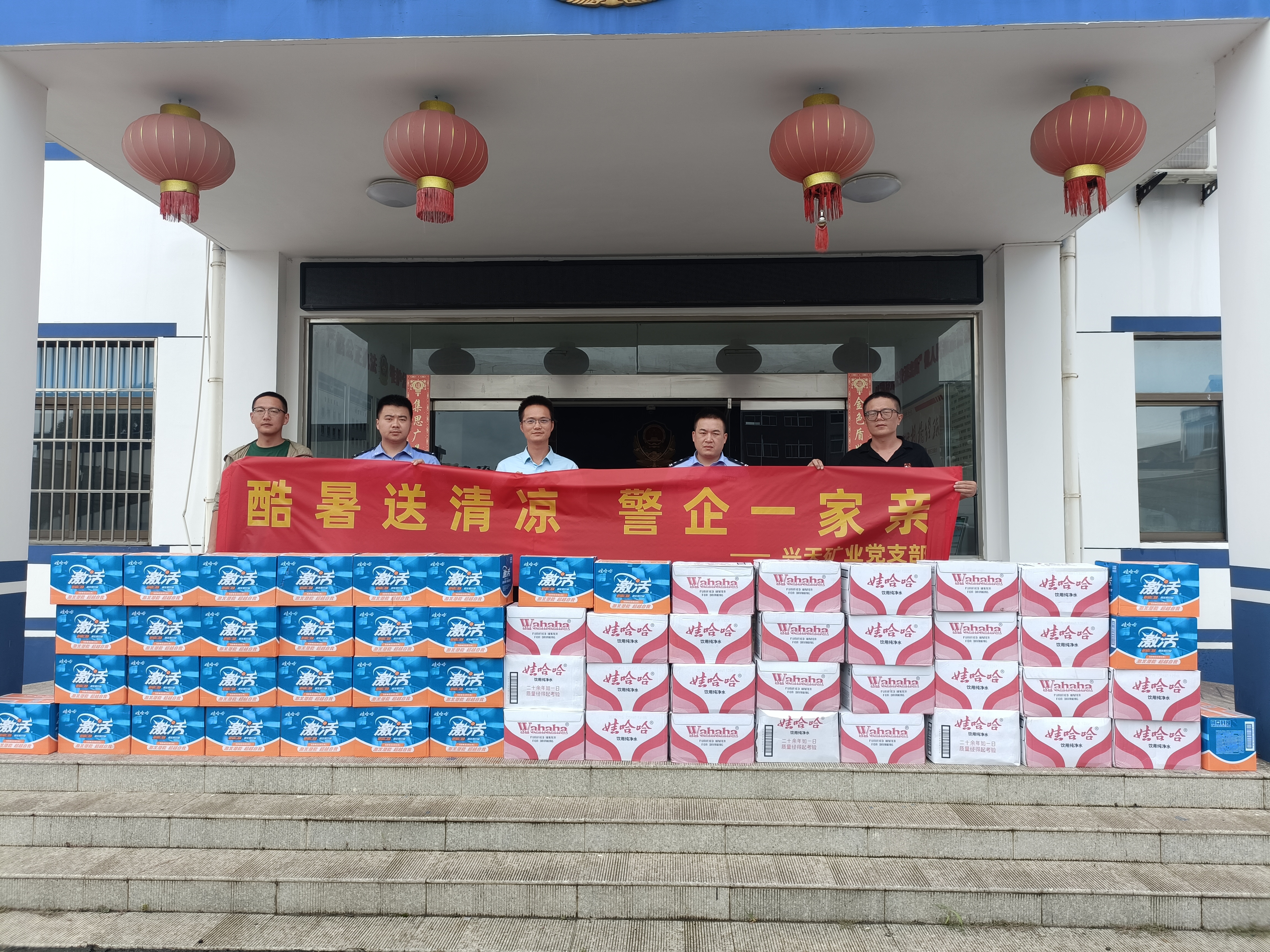 7月26日,興天礦業(yè)黨支部赴金集鎮(zhèn)派出所開展“夏送清涼”慰問活動,為民警送去防暑降溫物品。