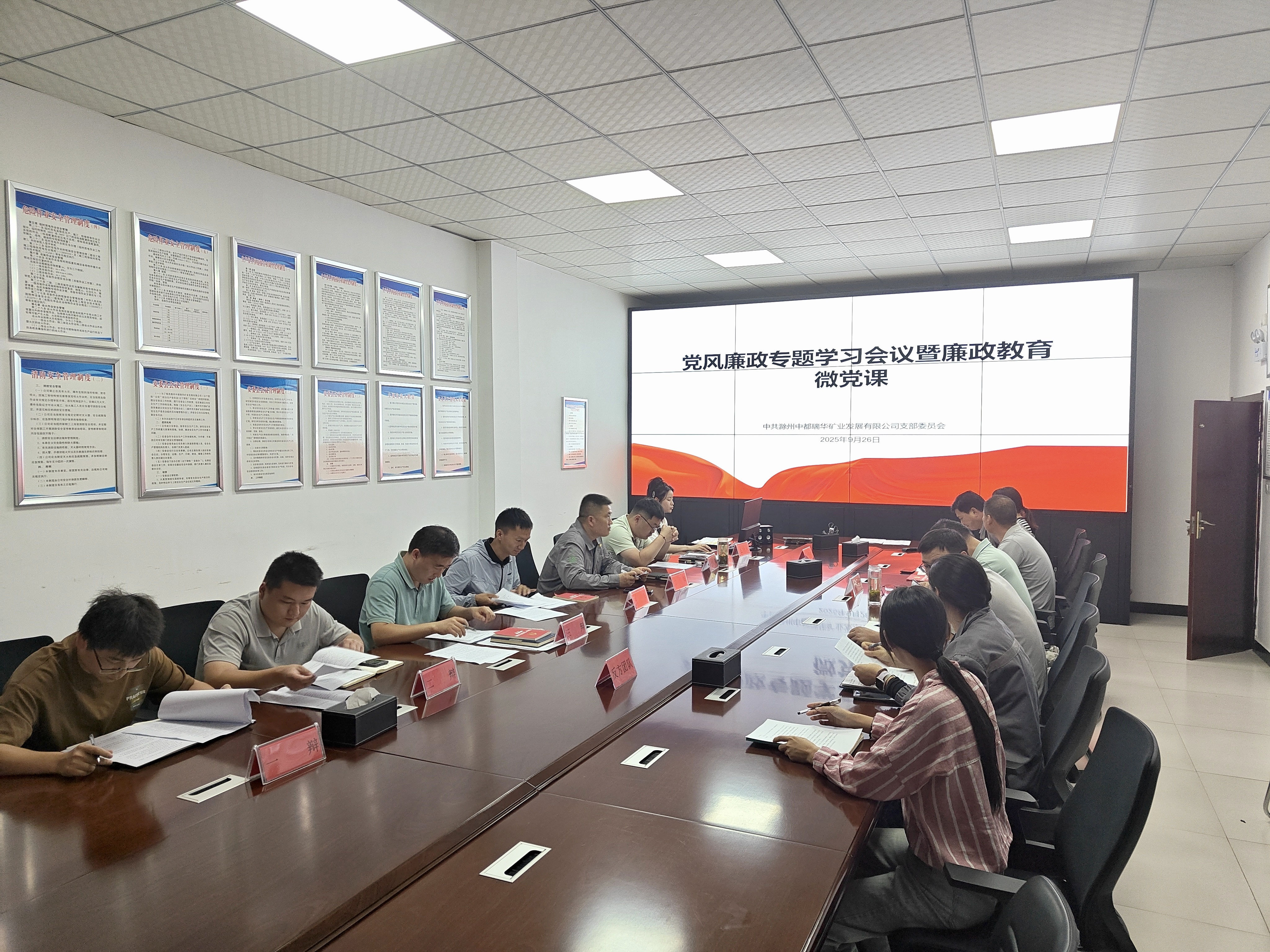 為持續(xù)深化黨風(fēng)廉政建設(shè),深入貫徹中央八項(xiàng)規(guī)定精神,在國(guó)慶、中秋雙節(jié)來(lái)臨之際,中都瑞華礦業(yè)黨支部于2025年9月26日組織召開(kāi)黨風(fēng)廉政專(zhuān)題學(xué)習(xí)會(huì)議,并以“辯以明紀(jì),篤行致遠(yuǎn)”為主題開(kāi)展廉政教育微黨課。