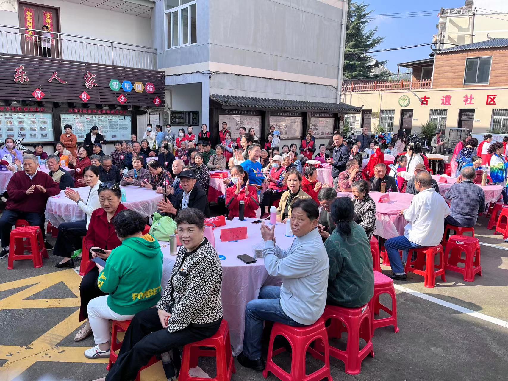 演出結(jié)束后,社區(qū)居民為老人們準(zhǔn)備了鄰里百家宴。參加活動的居民家庭陸續(xù)端出自家拿手好菜為百家宴加餐。滁州好人、瑯琊好人、特扶家庭、高齡老人及空巢老人等服務(wù)對象均參與其中。