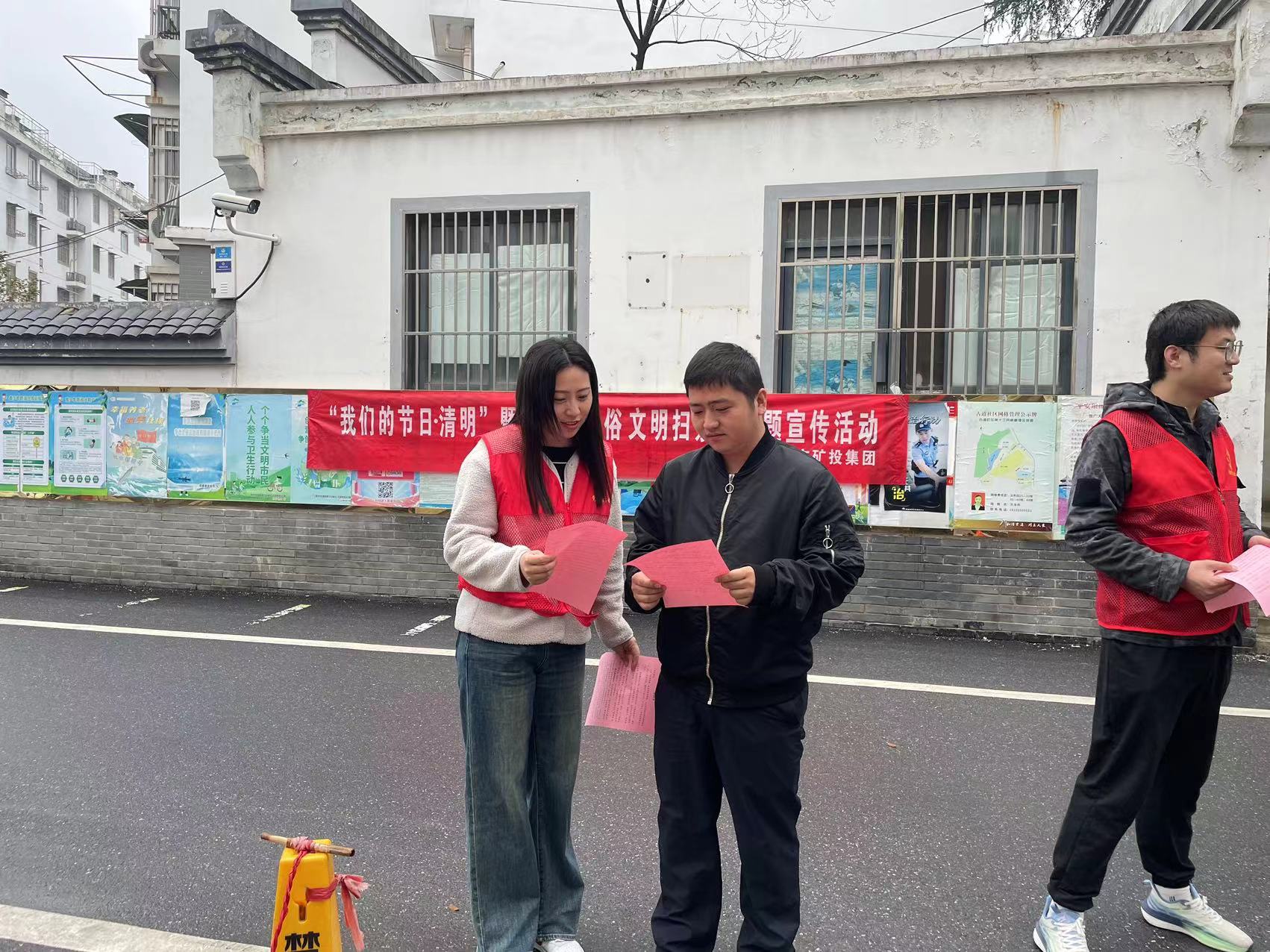 活動中,志愿者向路過的居民發(fā)放《文明祭掃 綠色清明倡議書》宣傳單,讓居民詳細了解文明祭祀的途徑,號召居民轉變觀念、破除陋習,以網上祭掃、家庭追思、鮮花祭奠等文明、環(huán)保、綠色的方式寄托哀思。
