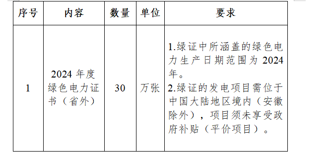 1.1項(xiàng)目名稱:2024年度綠色電力證書(shū)采購(gòu)項(xiàng)目(興全)