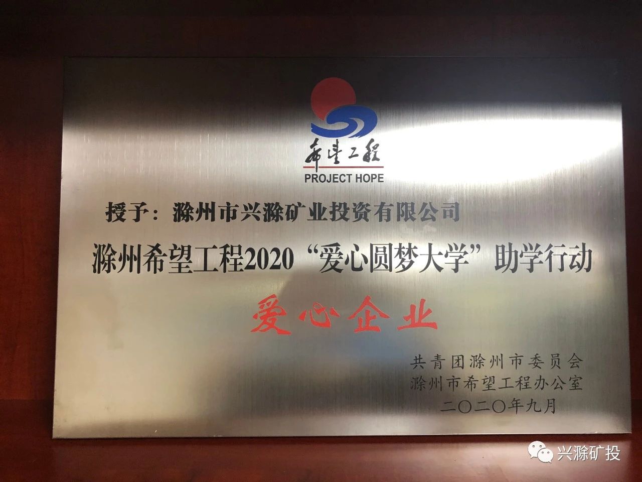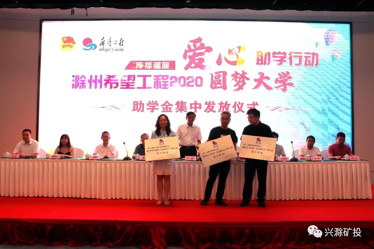 9月8日上午,市礦投公司受邀參加滁州希望工程2020圓夢大學(xué)助學(xué)金集中發(fā)放儀式,并被共青團滁州市委員會、滁州市希望工程辦公室授予“愛心企業(yè)”稱號!