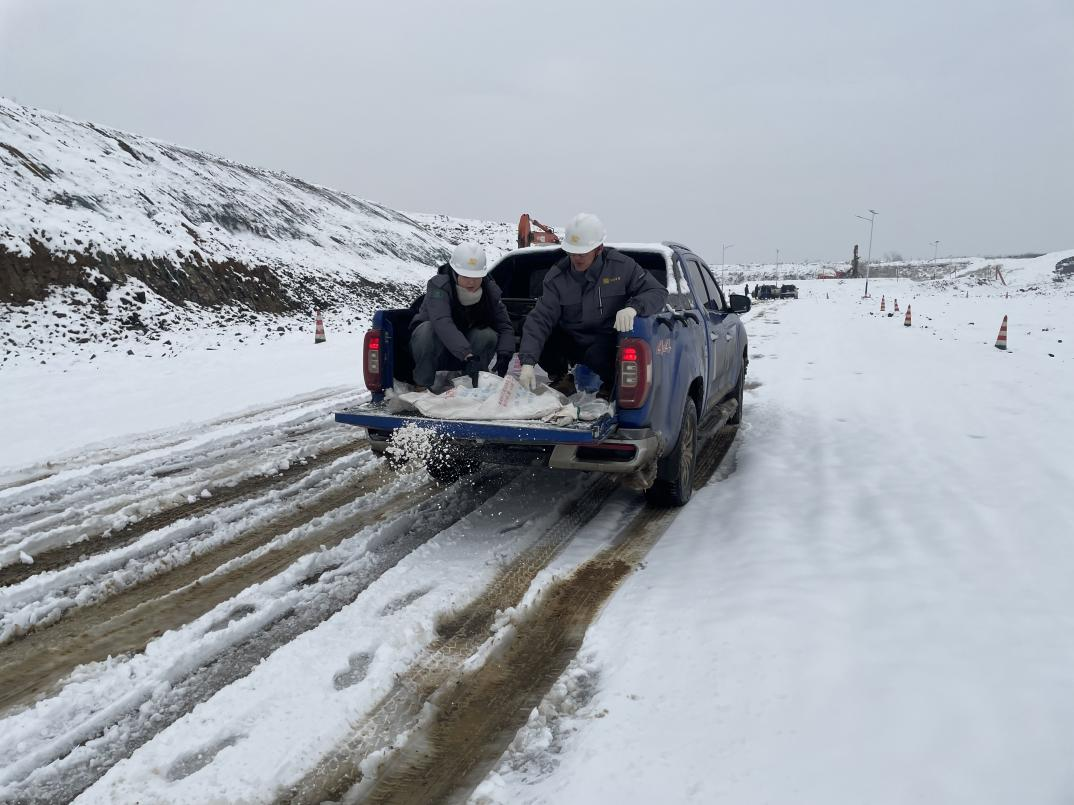 迎寒而上,盡心保障礦區(qū)生產。為應對嚴寒天氣,早日實現礦區(qū)正常生產。19日上午10點,公司組織干部群眾深入礦區(qū),搬起融雪劑、揮著鐵鍬、掄起雪鏟,投入到清除礦區(qū)積雪的勞動中,累計拋灑融雪劑1500斤,基本覆蓋了礦區(qū)的所有運輸道路。