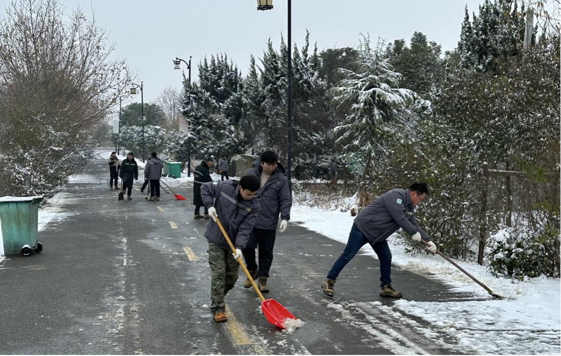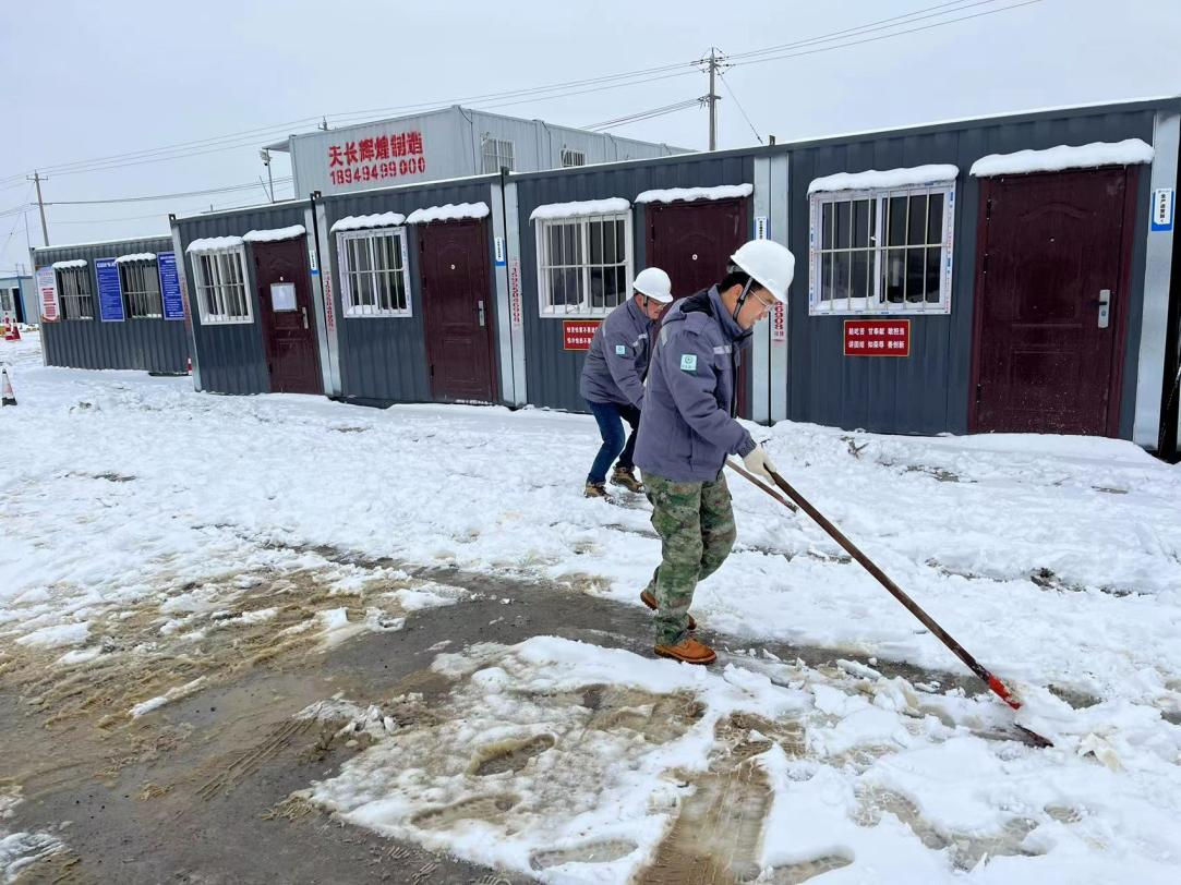 以“雪”為令,齊心協(xié)力清掃家園。19日上午8點,公司組織志愿者清掃辦公區(qū)積雪,志愿者們冒著颼颼襲來的寒風,紛紛拿起鐵鍬、掃帚等工具,相互配合、齊心協(xié)力,干的熱火朝天,不久,辦公區(qū)域積雪全部鏟除,保障了辦公區(qū)職工的出行安全。