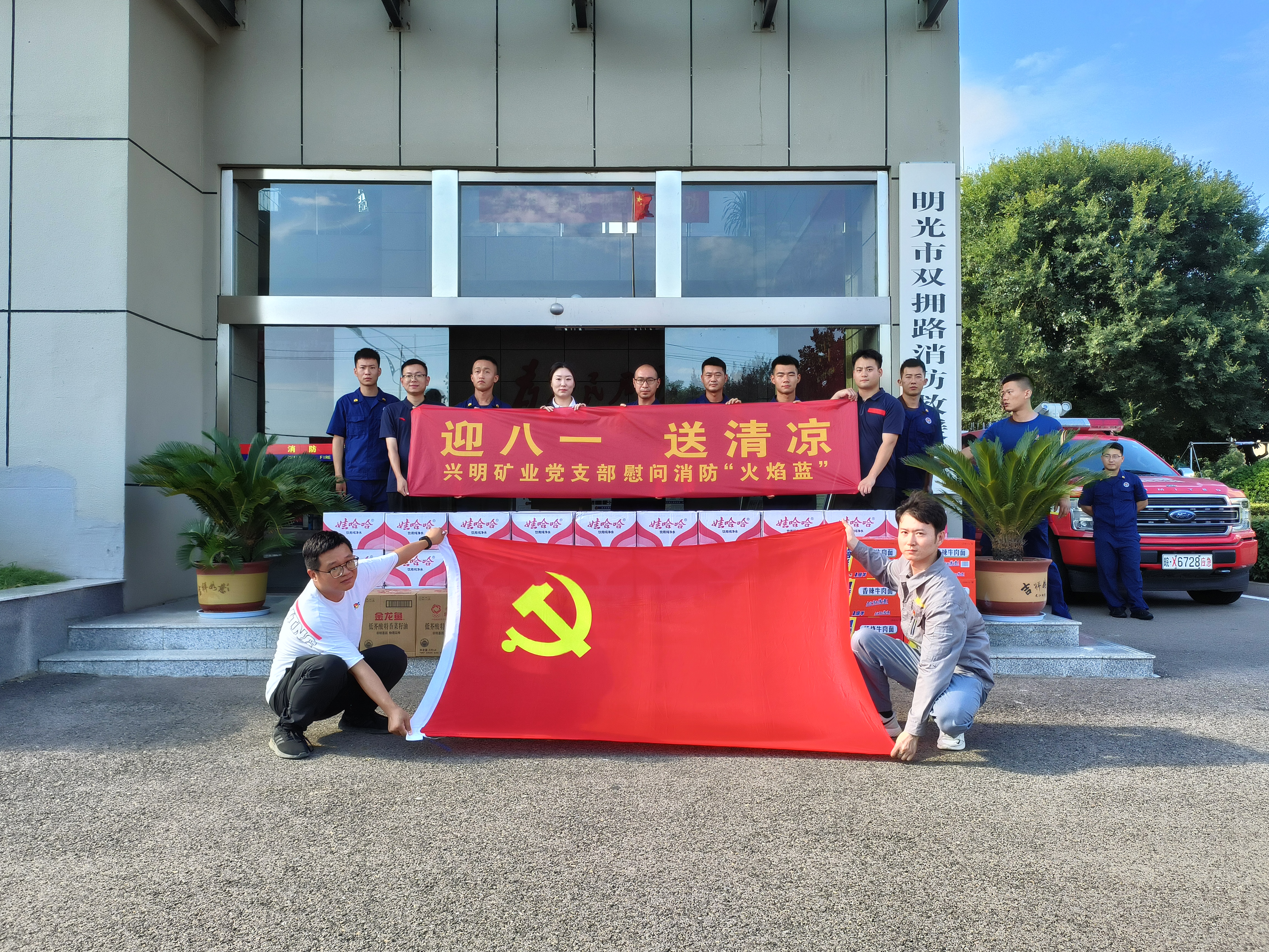“八一”前夕,興明礦業(yè)黨支部帶著滿滿的關(guān)懷與敬意,走進(jìn)明光市消防救援大隊開展“送清涼”活動,為消防員們送上了礦泉水、方便面等物資。