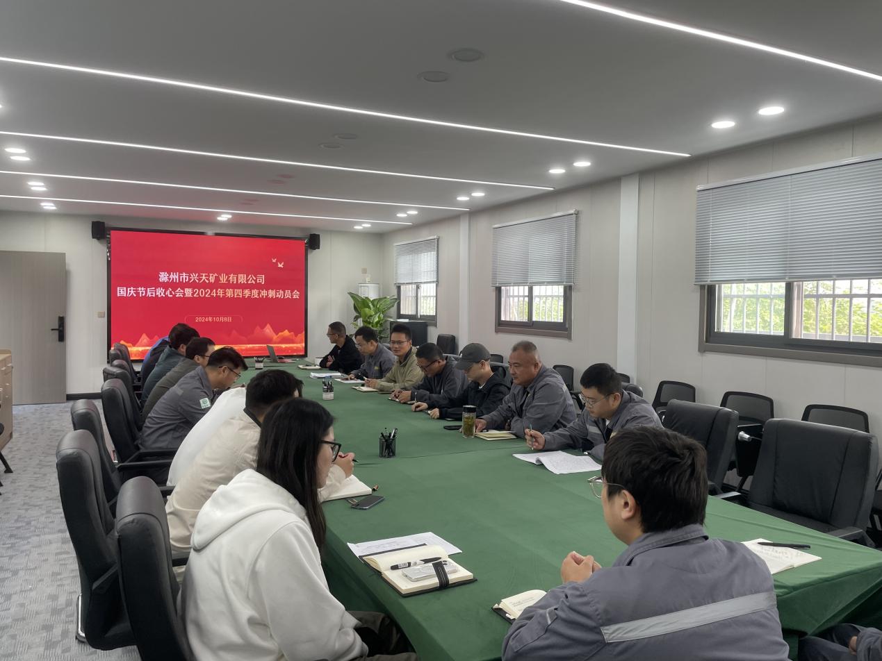 10月8日上午,興天礦業(yè)組織開(kāi)展國(guó)慶節(jié)后收心會(huì)暨2024年第四季度沖刺動(dòng)員會(huì)。公司全體職工及實(shí)業(yè)公司、工程公司駐項(xiàng)目部代表參會(huì)。