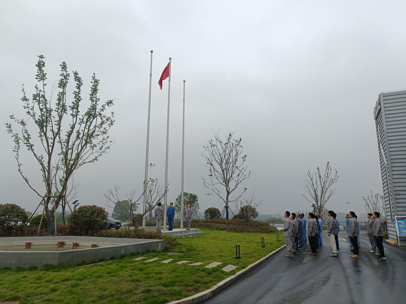 上午8時10分,升旗儀式正式開始。全體人員精神飽滿,列隊整齊,懷著無比崇敬的心情,莊嚴肅立。伴隨著雄壯嘹亮的國歌,五星紅旗冉冉升起,現(xiàn)場成員帶著對偉大祖國的崇高敬意行注目禮。